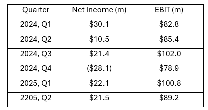 As explained previously, the $28.1m loss in Q4, 2024 was due to refinancing debt early. Other than this loss, it appears that Onity has stabilized its earnings.